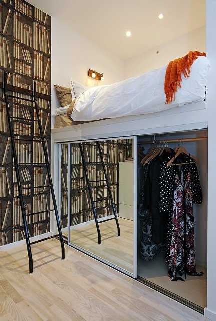 Кровать ,встроенная в шкаф, позволит съэкономить протранство