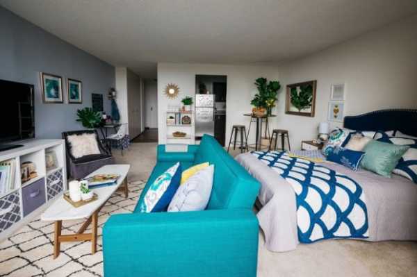 Цвет мебели. О нем, в случае с однокомнатной квартирой – речь особая. В идеале он должен быть не темным. Хорошо воспринимаются комбинации белого с голубым или бежевым.
