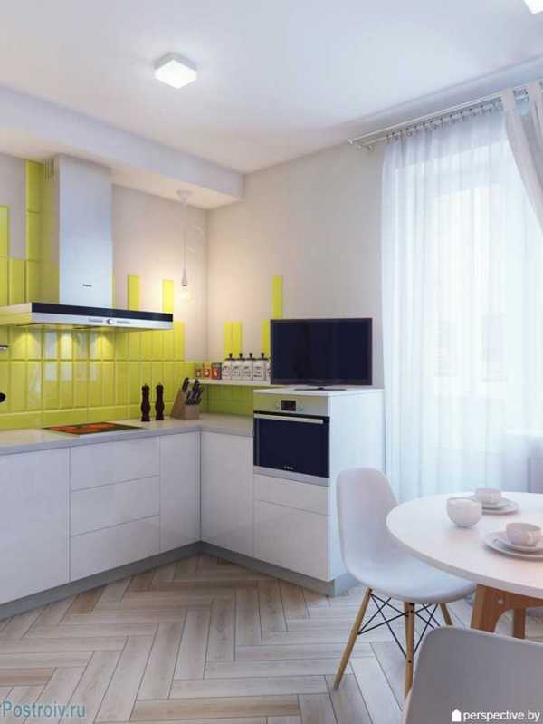 Дизайн светлой кухни в однокомнатной квартире 36 кв. м. Фото
