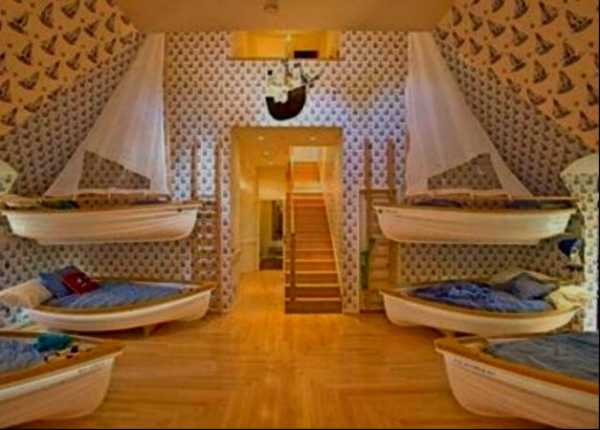 Все это можно реализовать в спальной комнате. Для любителей морских приключений прекрасно подойдет кровать в виде пиратского корабля. Малыш будет играть со своей шхуной, мастерски управлять штурвалом. А засыпать будет под настоящим пиратским флагом.