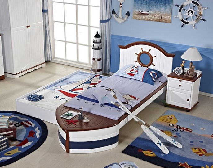 - Кровати-катера, предложенные одноярусными моделями, станут отличным подарком для будущих мореплавателей. Удобные и красочные конструкции подарят массу положительных эмоций. Во время сна родители могут оставить переживания, что непоседа свалится — защитные бортики не позволят покинуть «борт».