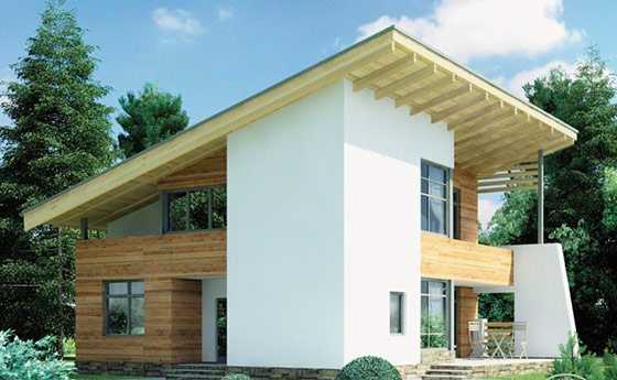 - Конструкции кровли. Обычная двускатная крыша действительно смотрится шаблонно, но если ее сделать ассиметричной, то внешний вид всего здания сразу преобразится.
