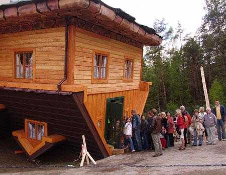 Польский бинесмен Даниэль Шапиевски занимается строительством домов из дерева. Обычно, на создание одного домика из срубов у него уходит около трёх недель. Неизвестно, что подвигло его на строительство этого уникального перевернутого дома – любовь к искусству или желание привлечь интерес общественности – однако, его постройка заняла 114 дней.