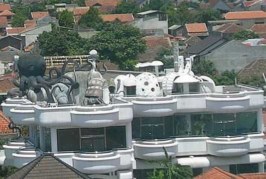 По просторам интернета бродит странная фотография необычного дома, с фигурами морских обитателей на крыше! Никакой информации об этом загадочном здании нет – придется пользоваться скупыми данными с ресурса Flickr: «Это здание используется служителями сатанинского культа. С улицы вход не виден. Чтобы посетить эту своеобразную церковь, нужно специальное приглашение одного из последователей». В это сложно поверить, не так ли?