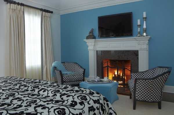 Спальня в классических тонах. Очень необыкновенный интерьер спальной в стильных классических тонах с уютным камином.