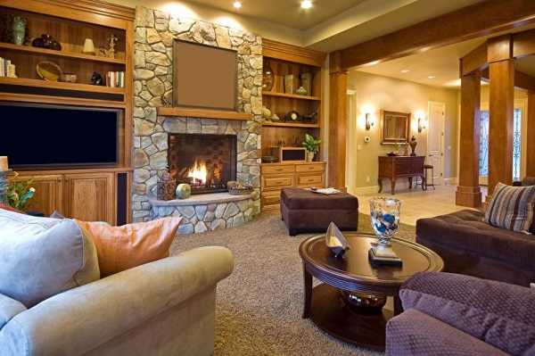 Комфортная обстановка. Обстановка в гостиной комнате преображена с помощью очень красивого камина.