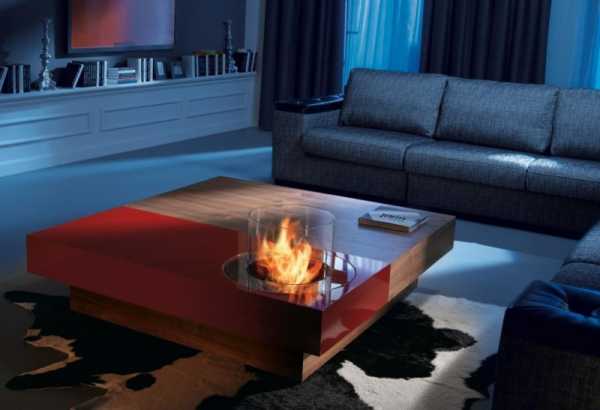 Поставить на кофейный столик вазу — идея проверенная, но скучная. Куда эффектнее на нем будет смотреться встроенный биокамин.