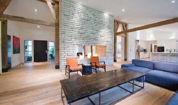 Комната с деревянными планками. Интересное решение преображения комнаты с деревянными балками, что создаст уют с камином в дополнении.