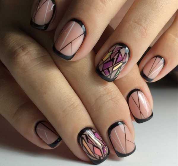 Этот модный маникюр удачно создаст яркий и творческий образ. На телесной поверхности можно сделать красивый рисунок геометрических форм. Смотрится достаточно стильно маникюр совпадает с вашим стилем.