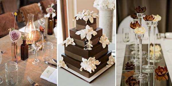 Бежевый и шоколадный цвет в декоре свадьбе и в свадебном торте