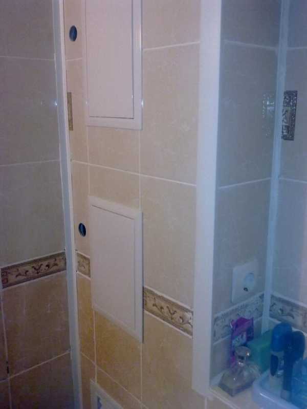 Встроенный шкаф выглядит компактно и обеспечивает доступ к коммуникациям. Такой, к слову, можно весьма дешево сделать своими руками