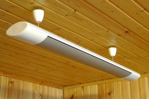 ИК-обогреватели, которые монтируются на потолок, имеют более широкий диапазон свечения. Они не занимают полезное место в комнате и позволяют быстро прогревать просторные помещения.