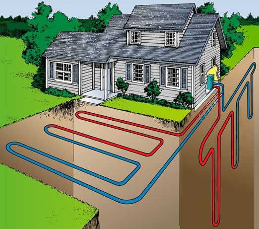 Когда создается такое отопление — новые технологии предполагают использование следующей конструкции геотермальной системы: