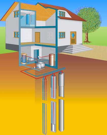 Самые эффективные и производительные геотермальные системы, в основе которых находятся современные технологии отопления частного дома, используют вместо грунтовых вод антифриз, заливаемый в резервуар, расположенный на глубине (детальнее: «Современные системы отопления частного дома — выбираем вариант отопительной системы из доступных»).