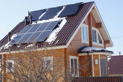 Еще одно направление, относительно новое в отоплении частного дома – это использование солнечной энергии. В данном случае владельцы загородной недвижимости могут использовать специальные коллекторы или фотоэлектрические панели, солнечные нагреватели. Последние устройства имеют низкую энергоэффективность (КПД не превышает 20%), что явилось причиной их непопулярности. Более востребованы батареи коллекторного типа.