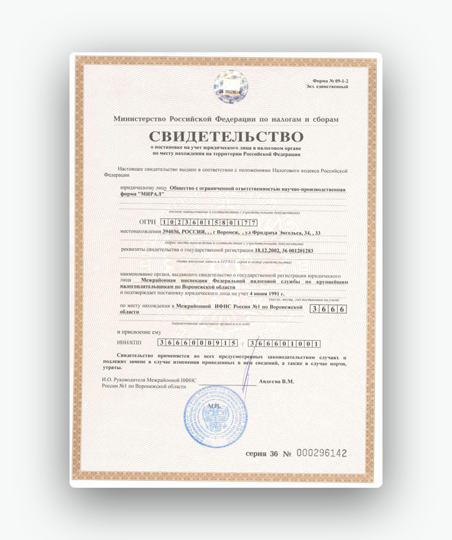 — Свидетельство о регистрации