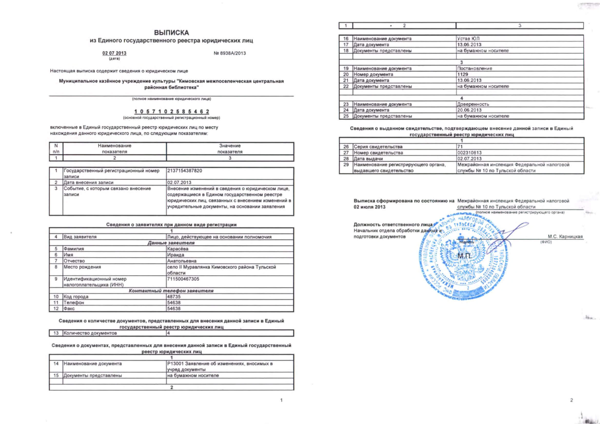 Выписка из ЕГРЮЛ