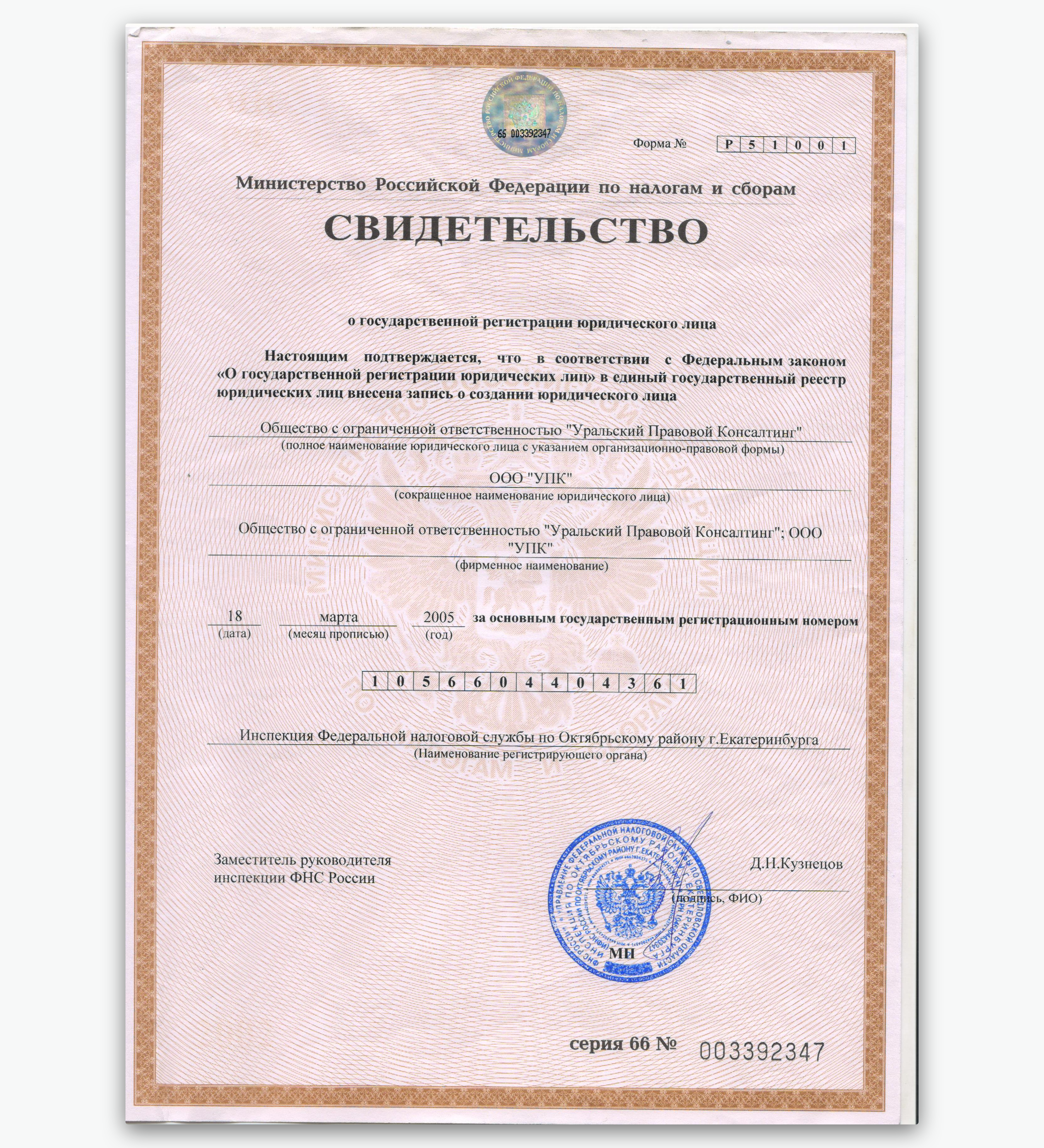 Свидетельство о регистрации
