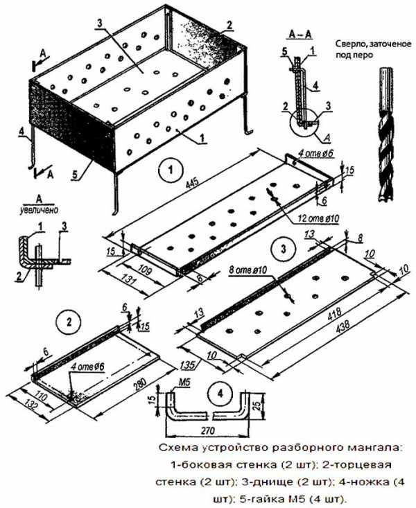 Надеюсь, мои нехитрые советы помогут в изготовлении разборного мангала. Сделать его своими руками по представленной выше схеме, скорее всего, ни для кого не составит труда.