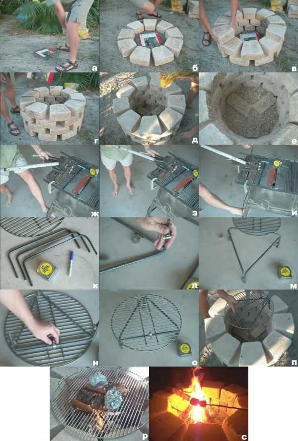 - Следующие ряды камней выкладываются в шахматном порядке. Количество рядов Вы определяете сами. Однако оптимальная высота для очага – 40 см. (в, г)