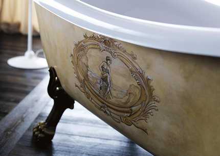 ΠΠ°Π½Π½Π°Ρ, ΡΡΡΠ°Π½ΠΎΠ²Π»Π΅Π½Π½Π°Ρ Π½Π° ΡΡΠΈΠ»ΡΠ½ΡΠ΅ Π½ΠΎΠΆΠΊΠΈ, Π²ΡΠ³Π»ΡΠ΄ΠΈΡ Π΄ΠΎΡΡΠΎΠΉΠ½ΠΎ, Π΄ΠΎΡΠΎΠ³ΠΎ ΠΈ ΠΏΡΠΈΠ²Π»Π΅ΠΊΠ°ΡΠ΅Π»ΡΠ½ΠΎ. ΠΠ΅ΡΡ ΠΈΠ½ΡΠ΅ΡΡΠ΅Ρ ΠΏΠΎΠΌΠ΅ΡΠ΅Π½ΠΈΡ Ρ ΡΠ°ΠΊΠΈΠΌ Π΄Π΅ΠΊΠΎΡΠΎΠΌ Π½Π°ΠΏΠΎΠ»Π½ΡΠ΅ΡΡΡ Π°ΡΠΌΠΎΡΡΠ΅ΡΠΎΠΉ ΡΠΎΡΠΆΠ΅ΡΡΠ²Π΅Π½Π½ΠΎΡΡΠΈ ΠΈ ΠΊΡΠ°ΡΠΎΡΡ. ΠΡΠΈ ΠΆΠ΅Π»Π°Π½ΠΈΠΈ Π²ΠΎΡΡΠΎΠ·Π΄Π°ΡΡ ΡΠΎΡΠΊΠΎΡΡ ΠΊΠΎΡΠΎΠ»Π΅Π²ΡΠΊΠΈΡ ΠΏΠΎΠΊΠΎΠ΅Π² Π² ΠΎΠ±ΡΡΠ½ΠΎΠΉ Ρ ΡΡΡΠ΅Π²ΠΊΠ΅ ΠΌΠΎΠΆΠ½ΠΎ Π²ΠΎΡΠΏΠΎΠ»ΡΠ·ΠΎΠ²Π°ΡΡΡΡ ΡΠ°ΠΊΠΈΠΌ Π΄ΠΎΡΡΡΠΏΠ½ΡΠΌ ΡΠ΅Π³ΠΎΠ΄Π½Ρ ΡΠ°Π½ΡΠ΅Ρ Π½ΠΈΡΠ΅ΡΠΊΠΈΠΌ Π°ΠΊΡΠ΅ΡΡΡΠ°ΡΠΎΠΌ, ΠΊΠ°ΠΊ Π²Π°Π½Π½Π°Ρ Π½Π° ΡΠ»Π΅Π³Π°Π½ΡΠ½ΡΡ Π½ΠΎΠΆΠΊΠ°Ρ .