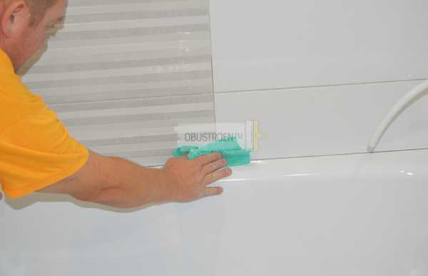 ΠΠ΅Π΄ΠΎΡΡΠ°ΡΡΠ°Ρ ΠΏΠ»ΠΈΡΠΊΠ° ΠΌΠ΅ΠΆΠ΄Ρ Π²Π°Π½Π½ΠΎΠΉ ΠΈ ΡΡΠ΅Π½ΠΎΠΉ ΠΏΠΎΠ»ΠΎΠΆΠ΅Π½Π°, ΡΠ²Ρ Π·Π°ΡΠ΅ΡΡΡ, ΡΠ΅ΠΏΠ΅ΡΡ ΠΏΡΠΈΡΡΡΠΏΠ°Π΅ΠΌ ΠΊ ΠΏΠΎΡΠ»Π΅Π΄Π½Π΅ΠΌΡ ΡΡΠ°ΠΏΡ ΠΎΡΠ΄Π΅Π»ΠΊΠΈ β Π³Π΅ΡΠΌΠ΅ΡΠΈΠ·Π°ΡΠΈΡ ΡΠ²ΠΎΠ². ΠΡΠΎΡΠΈΡΠ°Π΅ΠΌ ΡΠΎΠ² ΠΌΠ΅ΠΆΠ΄Ρ Π²Π°Π½Π½ΠΎΠΉ ΠΈ ΡΡΠ΅Π½ΠΎΠΉ, Π²ΡΠ΅ Π½Π°ΡΡΡ ΠΎ Π²ΡΡΠΈΡΠ°Π΅ΠΌ. ΠΠ»Ρ Π³Π΅ΡΠΌΠ΅ΡΠΈΠ·Π°ΡΠΈΠΈ Π±ΡΠ΄Π΅ΠΌ ΠΈΡΠΏΠΎΠ»ΡΠ·ΠΎΠ²Π°ΡΡ Π±Π΅Π»ΡΠΉ ΡΠΈΠ»ΠΈΠΊΠΎΠ½, ΠΊΠΎΡΠΎΡΡΠΉ Π½Π΅ Π΄Π°ΡΡ Π²ΠΎΠ΄Π΅ ΠΏΡΠΎΡΠΎΡΠΈΡΡΡΡ ΡΠΊΠ²ΠΎΠ·Ρ Π±ΠΎΡΡΠΈΠΊ Π²Π°Π½Π½Ρ.