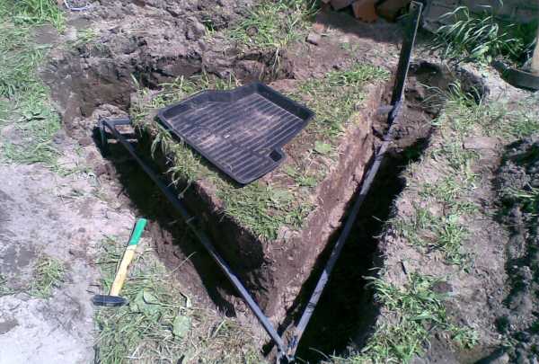 ΠΡ ΠΊΡΠ°Ρ ΠΎΡΠΌΠΎΡΡΠΊΠΈ Π΄ΠΎΠΌΠ° Π΄ΠΎ ΠΌΠ΅ΡΡΠ° ΡΡΡΠ°Π½ΠΎΠ²ΠΊΠΈ ΡΡΡΡΠ΅ Π΄ΠΎΠ»ΠΆΠ½ΠΎ Π±ΡΡΡ Π½Π΅ ΠΌΠ΅Π½Π΅Π΅ 1,5 ΠΌΠ΅ΡΡΠΎΠ². ΠΠ° Π²ΡΠ±ΡΠ°Π½Π½ΠΎΠΌ ΡΡΠ°ΡΡΠΊΠ΅ ΠΊΠΎΠΏΠ°ΡΡ ΡΡΠ°Π½ΡΠ΅Ρ Π² Π²ΠΈΠ΄Π΅ ΡΠ°Π²Π½ΠΎΡΡΠΎΡΠΎΠ½Π½Π΅Π³ΠΎ ΡΡΠ΅ΡΠ³ΠΎΠ»ΡΠ½ΠΈΠΊΠ° ΡΠΎ ΡΡΠΎΡΠΎΠ½ΠΎΠΉ 3 ΠΌ. ΠΠ»ΡΠ±ΠΈΠ½Π° ΡΡΠ°Π½ΡΠ΅ΠΈ 70 ΡΠΌ, ΡΠΈΡΠΈΠ½Π° β 50-60 ΡΠΌ β ΡΡΠΎΠ±Ρ Π±ΡΠ»ΠΎ ΡΠ΄ΠΎΠ±Π½ΠΎ Π²Π°ΡΠΈΡΡ. ΠΠ΄Π½Ρ ΠΈΠ· Π²Π΅ΡΡΠΈΠ½, ΠΊΠ°ΠΊ ΠΏΡΠ°Π²ΠΈΠ»ΠΎ, ΡΠ°ΡΠΏΠΎΠ»ΠΎΠΆΠ΅Π½Π½ΡΡ Π±Π»ΠΈΠΆΠ΅ ΠΊ Π΄ΠΎΠΌΡ, ΡΠΎΠ΅Π΄ΠΈΠ½ΡΡΡ Ρ Π΄ΠΎΠΌΠΎΠΌ ΡΡΠ°Π½ΡΠ΅Π΅ΠΉ ΠΈΠΌΠ΅ΡΡΠ΅ΠΉ Π³Π»ΡΠ±ΠΈΠ½Ρ Π½Π΅ ΠΌΠ΅Π½Π΅Π΅ 50 ΡΠΌ.Π Π²Π΅ΡΡΠΈΠ½Π°Ρ ΡΡΠ΅ΡΠ³ΠΎΠ»ΡΠ½ΠΈΠΊΠ° Π·Π°Π±ΠΈΠ²Π°ΡΡ ΡΡΡΡΠΈ (ΠΊΡΡΠ³Π»ΡΠΉ ΠΏΡΡΡΠΎΠΊ ΠΈΠ»ΠΈ ΡΠ³ΠΎΠ»ΠΎΠΊ Π΄Π»ΠΈΠ½ΠΎΠΉ ΠΏΠΎ 3 ΠΌ). ΠΠ°Π΄ Π΄Π½ΠΎΠΌ ΠΊΠΎΡΠ»ΠΎΠ²Π°Π½Π° ΠΎΡΡΠ°Π²Π»ΡΡΡ ΠΎΠΊΠΎΠ»ΠΎ 10 ΡΠΌ. ΠΠ±ΡΠ°ΡΠΈΡΠ΅ Π²Π½ΠΈΠΌΠ°Π½ΠΈΠ΅, Π·Π°Π·Π΅ΠΌΠ»ΠΈΡΠ΅Π»Ρ Π½Π° Π²ΡΠ²ΠΎΠ΄ΡΡ Π½Π° ΠΏΠΎΠ²Π΅ΡΡ Π½ΠΎΡΡΡ Π·Π΅ΠΌΠ»ΠΈ. ΠΠ½ Π½Π°Ρ ΠΎΠ΄ΠΈΡΡΡ Π½ΠΈΠΆΠ΅ ΡΡΠΎΠ²Π½Ρ Π³ΡΡΠ½ΡΠ° Π½Π° 50-60 ΡΠΌ.