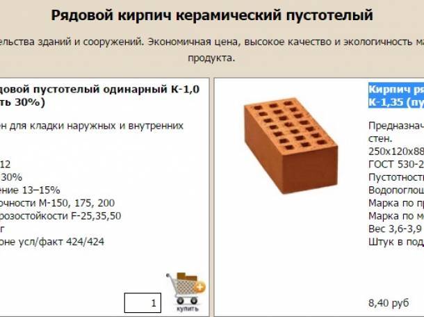 Спецификация облицовочного кирпича