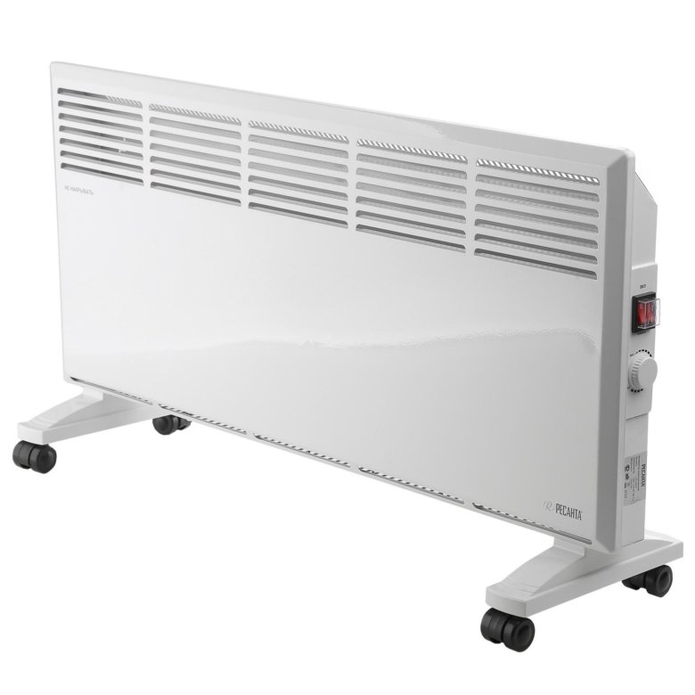 Закрытый ТЭН помещен в трубку, нагревается до 100 С и не сжигает кислород. Моноблочные элементы обогревателей более надежны, безопасны, с длительным сроком эксплуатации. Он представляет собой алюминиевый корпус внутри которого установлена спираль окруженная кварцевой посыпкой. - Местом установки — настенные и напольные. Настенный электрический конвектор монтируется к стене, что делает его неподвижным элементом обогрева. Для повышения эффективности его работы в комплект могут входить инфракрасные панели. Способ обогрева конвекцией и тепловым излучением, является более продуктивным, но и стоят такие системы дороже. Напольный — соответственно названию располагают на полу, он никак не прикреплен, а как правило снабжен для удобства перемещения из комнаты в комнату колесиками. Именно эта мобильная функция и есть главным преимуществом данного конвекторного обогревателя.