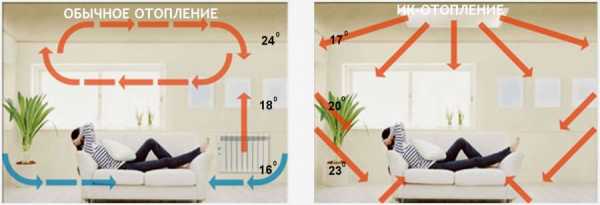 То есть ИК обогреватель не нагревает воздух, как это делают обычные нагревательные конвекционные элементы, а повышает температуру окружающих предметов.