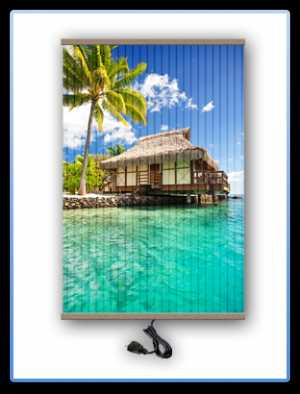 Потолочное устройствоЕсли вы на даче находитесь не постоянно, и хотите возить обогреватель с собой, то конечно самым оптимальным вариантом будет небольшой инфракрасный обогреватель с невысокой мощностью, напольный. Что касается настенных обогревателей, то они могут продаваться в виде картин или каких-то элементов декора, что сделает обогреватель практически незаметным, и позволит не только повышать температуру в помещении, но еще и украсит интерьер. Ниже представлены фотографии таких обогреватели.