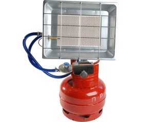Инфракрасный обогревательСуществуют каталитические газовые инфракрасные обогреватели. Устройства оснащены керамическими панелями с отражателем, чем обеспечивается локальность теплового воздействия. Здесь работа обогревателя основаа на преобразовании энергии тепла в инфракрасное излучение. ИК приборы, работающие от газового баллона обладают очень высокой тепловой производительностью. Удобны и эффективны для использования на открытых площадках, в палатках и т.д.