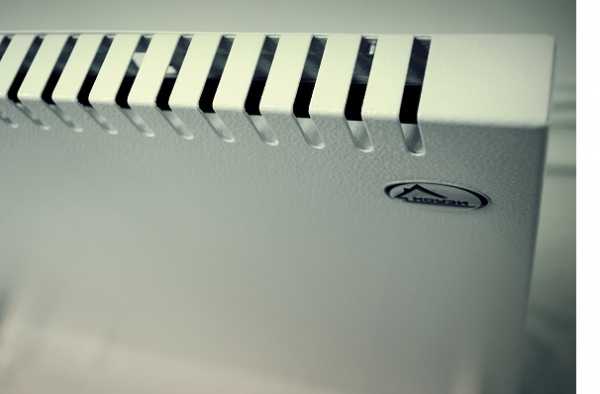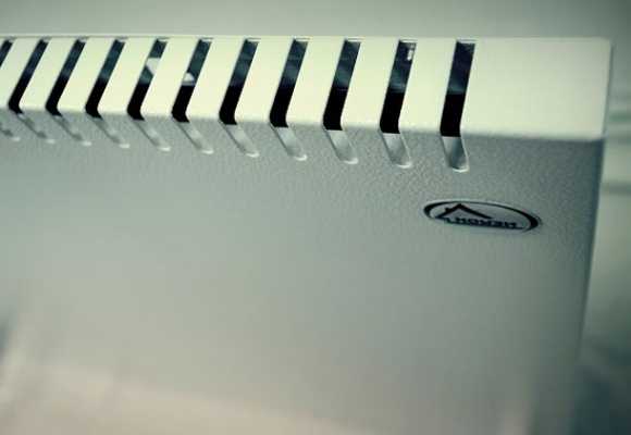 Конвектор состоит из нескольких пленочных нагревательных элементов, которые нагревают стальной радиатор внутри и цельнометаллический корпус. Холодный воздух поступает через нижние отверстия, нагревается и за счет естественной конвекции выходит через верхние прорези.