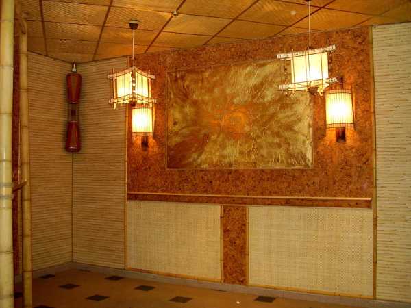 ΠΠ°ΠΌΠ±ΡΠΊΠΎΠ²ΡΠ΅ Π΄Π΅ΡΠ΅Π²ΡΡ Π½Π΅ΡΠ°Π·ΡΡΠ²Π½ΠΎ Π°ΡΡΠΎΡΠΈΠΈΡΡΡΡΡΡ Ρ Π―ΠΏΠΎΠ½ΠΈΠ΅ΠΉ ΠΈΠ»ΠΈ ΠΠΈΡΠ°Π΅ΠΌ. Π―ΠΏΠΎΠ½ΡΠΊΠΈΠΉ ΡΡΠΈΠ»Ρ Π»Π°ΠΊΠΎΠ½ΠΈΡΠ½ΡΠΉ ΠΈ Π½Π΅ Π²ΡΡΡΡΠ½ΡΠΉ. ΠΠ΅ΡΠ°Π»ΠΈ ΠΌΠΈΠ½ΠΈΠΌΠ°Π»ΠΈΡΡΠΈΡΠ½ΡΠ΅ ΠΈ Π½Π΅ Π³ΡΠΎΠΌΠΎΠ·Π΄ΠΊΠΈΠ΅. ΠΠ°ΠΌΠ±ΡΠΊΠΎΠ²ΡΠ΅ ΠΎΠ±ΠΎΠΈ ΠΌΠΎΠ³ΡΡ ΠΎΠ±ΡΠ°ΠΌΠ»ΡΡΡ ΠΊΠ°ΠΊ Π²ΡΠ΅ ΡΡΠ΅Π½Ρ, ΡΠ°ΠΊ ΠΈ Π²ΡΠ΄Π΅Π»ΡΡΡ Π½Π΅ΠΊΠΎΡΠΎΡΡΠ΅ Π·ΠΎΠ½Ρ ΠΊΠΎΠΌΠ½Π°ΡΡ. ΠΠΈΠ·Π°ΠΉΠ½ Π΄ΠΎΠΏΠΎΠ»Π½ΡΡ Π΄Π΅ΠΊΠΎΡΠ°ΡΠΈΠ²Π½ΡΠ΅ ΠΏΠΎΠ΄ΡΡΠΊΠΈ Ρ ΡΠ΅ΠΌΠ°ΡΠΈΡΠ΅ΡΠΊΠΈΠΌΠΈ ΡΠΈΡΡΠ½ΠΊΠ°ΠΌΠΈ, Π³ΡΡΠΏΠΏΠ° ΠΈΠ· Π½Π΅Π±ΠΎΠ»ΡΡΠΈΡ ΠΊΠ°ΡΡΠΈΠ½ ΠΈ Π΄ΡΡΠ³ΠΈΠ΅ ΠΏΡΠ΅Π΄ΠΌΠ΅ΡΡ Π΄Π΅ΠΊΠΎΡΠ°. ΠΠ°ΠΌΠ±ΡΠΊΠΎΠ²Π°Ρ ΠΎΡΠ΄Π΅Π»ΠΊΠ° ΡΠ΄Π°ΡΠ½ΠΎ ΡΠΎΡΠ΅ΡΠ°Π΅ΡΡΡ Ρ ΡΠ΅ΠΌΠ°ΡΠΈΡΠ΅ΡΠΊΠΈΠΌΠΈ ΡΠΎΡΠΎΠΎΠ±ΠΎΡΠΌΠΈ.