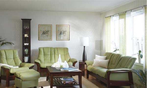 Белые обои станут прекрасным фоном для броской мебели или экстравагантных предметов искусств. В комнатах с такой отделкой хорошо смотрится текстиль теплых оттенков и массивная мебель. Не стоит забывать, что центральным объектом гостиной, как правило, выступает диван, под цвет которого и подбирается палитра текстильного оформления комнаты.