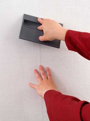 Стеклотканевые обои под покраску – толстый материал, клеится встык, без нахлеста, иначе образуются заметные полосы-соединения. В течении суток, приклеенные обои стоит предохранять от сквозняков и прямых солнечных лучей. В случае, если какая-то часть обоев вспучилась – необходимо снять все полотно и переклеить заново. Не заметив такой дефект вовремя, можно испортить весь ремонт: стеклообои очень прочно соединяются со стеной, создают практически единое целое, и отклеить их через сутки уже невозможно.