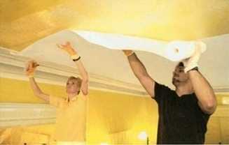 ΠΠ±ΡΠ·Π°ΡΠ΅Π»ΡΠ½ΡΠΌ ΡΡΠ°ΠΏΠΎΠΌ Π±ΡΠ΄Π΅Ρ ΡΠ°ΡΡΡΠΈΠ»Π°Π½ΠΈΠ΅ ΠΏΠ»Π΅Π½ΠΊΠΈ ΠΈΠ· ΠΏΠΎΠ»ΠΈΡΡΠΈΠ»Π΅Π½Π° Π½Π° ΠΏΠΎΠ»Ρ. ΠΡΠΎ Π΄Π΅Π»Π°ΡΡ Π΄Π»Ρ ΡΠΎΠ³ΠΎ, ΡΡΠΎΠ±Ρ ΠΏΡΠΈ ΡΠ°ΡΠΊΠ°ΡΡΠ²Π°Π½ΠΈΠΈ ΡΡΠ»ΠΎΠ½Π° ΠΎΠ±ΠΎΠΈ Π½Π΅ ΠΏΠ°ΡΠΊΠ°Π»ΠΈΡΡ. ΠΠΎΡΠ»Π΅ ΡΡΠΎΠ³ΠΎ ΡΠ»Π΅Π΄ΡΠ΅Ρ ΠΏΠΎΠΌΠ΅ΡΠΈΡΡ Π²ΡΡΠΎΡΡ ΠΏΠΎΠΌΠ΅ΡΠ΅Π½ΠΈΡ ΡΡΠ»Π΅ΡΠΊΠΎΠΉ, Π½Π° ΡΠΎΠΌ ΡΡΠ°ΡΡΠΊΠ΅, Π³Π΄Π΅ Π±ΡΠ΄Π΅Ρ Π½Π°ΠΊΠ»Π΅ΠΈΠ²Π°ΡΡΡΡ ΠΏΠΎΠ»ΠΎΡΠ½ΠΎ, ΠΈ Π΄ΠΎΠ±Π°Π²ΠΈΡΡ Π΅ΡΠ΅ 10 ΡΠΌ. Π§Π°ΡΡΡ ΡΡΠ»ΠΎΠ½Π° ΠΎΠ±ΠΎΠ΅Π² Π½Π΅ΠΎΠ±Ρ ΠΎΠ΄ΠΈΠΌΠΎ ΠΎΡΠΎΠ³Π½ΡΡΡ Π½Π° ΡΠ°ΡΠΊΠ°ΡΠ°Π½Π½ΡΠΉ ΡΡΠ°ΡΡΠΎΠΊ ΡΠ°ΠΊ, ΡΡΠΎΠ±Ρ ΠΊΡΠΎΠΌΠΊΠΈ Π½Π° ΠΊΡΠ°ΡΡ ΡΠΎΠ²ΠΏΠ°Π»ΠΈ. Π ΡΡΠΎΠΌ ΡΠ»ΡΡΠ°Π΅ ΠΈΠ·Π³ΠΈΠ± Π±ΡΠ΄Π΅Ρ ΡΠΎΠ²Π½ΡΠΌ. ΠΠ»Ρ ΡΡΠΎΠ³ΠΎ ΠΏΡΠΈΠ³ΠΎΠ΄ΠΈΡΡΡ ΠΊΠ°Π½ΡΠ΅Π»ΡΡΡΠΊΠΈΠΉ Π½ΠΎΠΆ. ΠΡΠΈΠΌ Π½Π΅Ρ ΠΈΡΡΡΠΌ ΡΠΏΠΎΡΠΎΠ±ΠΎΠΌ ΠΌΠΎΠΆΠ½ΠΎ ΠΏΡΠΈΠ³ΠΎΡΠΎΠ²ΠΈΡΡ Π»ΠΈΡΡΡ ΠΎΠ±ΠΎΠ΅Π² ΠΏΠΎΠ΄ ΠΏΠΎΠΊΡΠ°ΡΠΊΡ Π½Π° Π²ΡΡ ΠΊΠΎΠΌΠ½Π°ΡΡ.