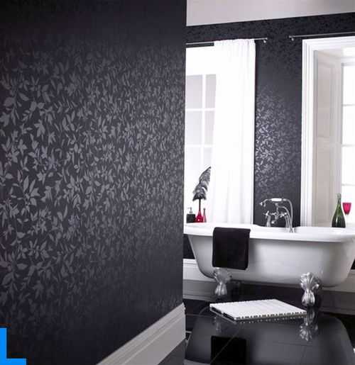 Обои черного цвета на стены в интерьере кухни, гостиной, спальни, туалета