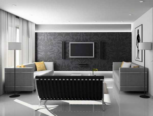Гостиная также может быть оформлена черными обоями, но здесь нужна большая осторожность, правильная дозировка, чувство меры. Переизбыток черного превратит гостиную в готическое помещение, комфортно и уютно в таком точно не будет.
