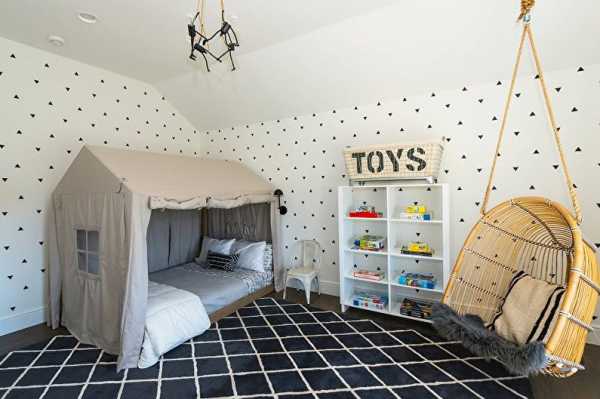 Детская зачастую оклеивается разноцветными обоями с розовыми или голубыми деталями. Но существует и универсальное решение – пара черного и белого подходит как для девочки, так и для мальчика. Она поможет превратить помещение в яркое, стильное и интересное.