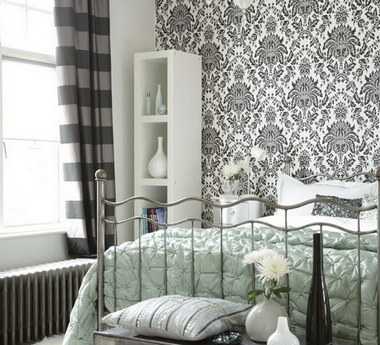 Черно-белые обои в спальне