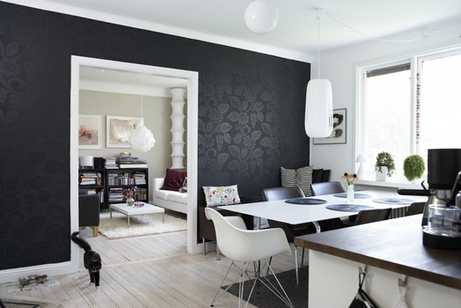 Черные обои в интерьере должны быть подобраны с умом, чтобы каждая комната в квартире (спальня, кухня, гостиная) соответствовала вашим ожиданиям. Именно поэтому важно ориентироваться на некоторые особенности применения черного цвета в комнате. Благодаря широкому ассортименту обоев черного цвета на рынке выбрать приятный на ощупь и стильный материал с рисунком не составит труда, однако это не значит, что на кухне, в спальне или гостиной такие черные обои в интерьере будут смотреться гармонично. Именно поэтому желательно придерживаться определенных правил.