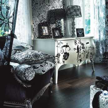 Эту драматичную цветовую пару по праву можно назвать излюбленным дизайнерским приемом. Ведь применение белого полотна с узорами черного цвета и наоборот создает выразительный фон для художественных изысков.