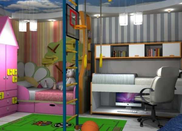 Двухъярусная мебель — хороший вариант для разнополых детей, это может быть умеренный вариант или радикальное решение, когда комната фактически превращена в два разных помещения.