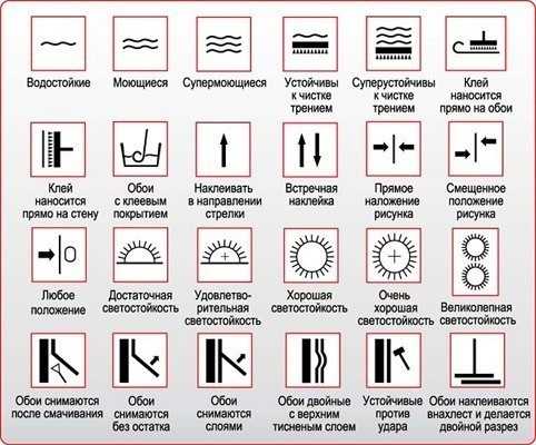Пиктограммы в упаковках обоев