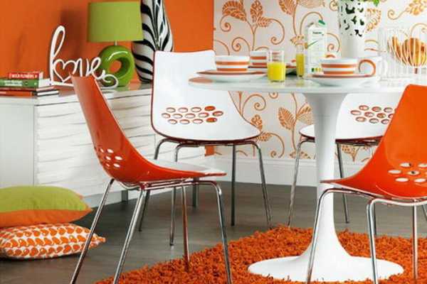 Вариант комбинирования ярких обоев на кухне
