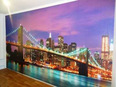 Использовать полотна с городской тематикой можно в любых помещениях. Широкое распространение этот вид отделки получил благодаря своим преимуществам: