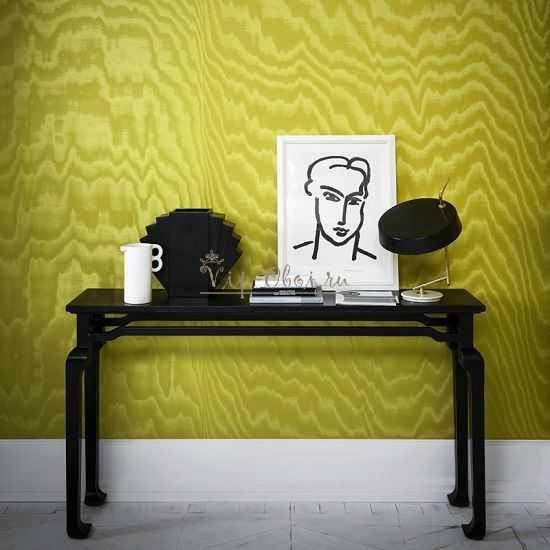 Картина на стене с шелковыми обоями фирмы Zoffany.