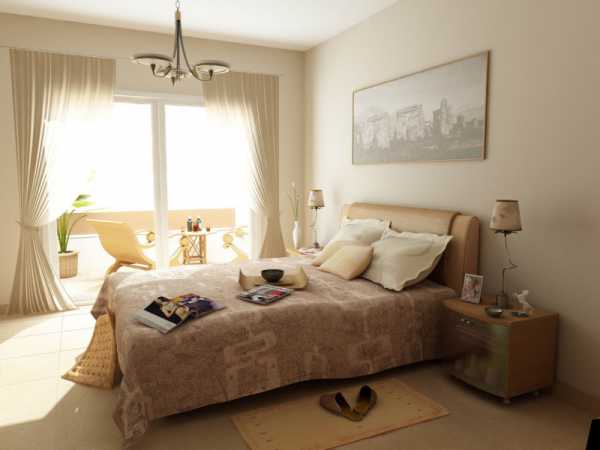 Отделка, мебель и дополнительные аксессуары, выполненные в бежевом цвете, дают возможность создать в спальне атмосфер, наиболее располагающую к расслаблению и отвлечению от негативных мыслей. Для того чтобы избежать безликости в интерьере, можно дополнить дизайн комнаты некоторыми яркими элементами декора.