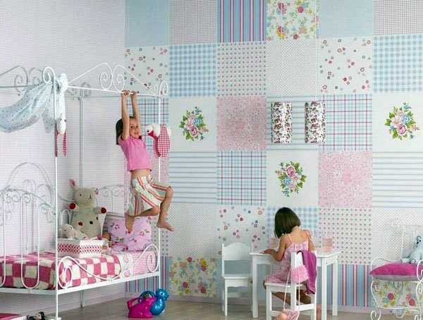 - Комбинируя обои, следует учитывать функцию помещения. В детской комнате хорошо будет смотреться сочетание однотонных материалов с обоями яркими и веселыми. Для гостиной лучше подойдут сочетания крупных геометрических фигур, полос или квадратов с однотонными зонами.